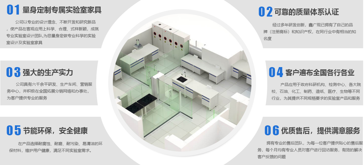 山東鑫廣實驗設備科技有限公司成立于2007年,是一家位于山東濰坊的實驗室家具工廠。作為實驗室整體解決方案服務商,我們提供從實驗室規(guī)劃、實驗室設計、實驗室裝修、實驗室工程、實驗室家具、實驗室設備、到實驗室服務等實驗室建造一站式服務,致力于專業(yè)研發(fā)、設計、生產實驗室家具等產品及相關配套設備,并提供實驗室建設全套解決方案的新型高科技企業(yè)。公司下設研發(fā)加工工廠、營銷服務中心,并積極在全國拓展分銷網絡和辦事處,為客戶提供更專業(yè)、優(yōu)良的產品和服務。